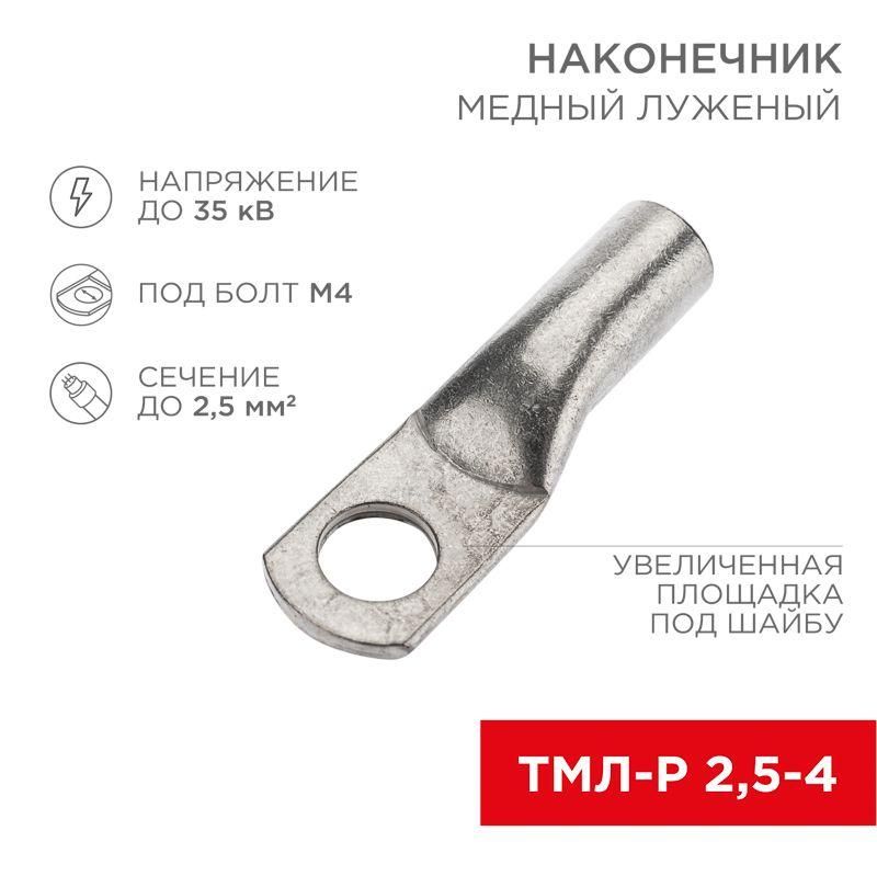 Наконечник медный луженый ТМЛ-Р 2,5–4 (2,5мм² - Ø4мм) ГОСТ 7386-80 (в упак. 10 шт.) | 07-5300-6 Rexant MEET