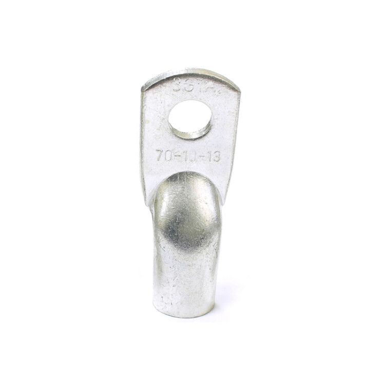 Наконечник медный луженый ТМЛ 70-10-13 опрессовочный совместим с кабелями, имеющими наружный диаметр около 13 мм. Для монтажа требуется специальный пресс с матрицей, подходящей под сечение 70 мм2. Убедитесь, что инструмент имеет достаточную мощность - недостаточно сдавливание приведёт к плохому контакту. После опрессовки проверьте герметичность соединения: металл не должен трещать, а форма должна сохранять правильную форму без перекосов. Не используйте плоскогубцы или другие неквалифицированные инструменты - они нарушают целостность соединения.