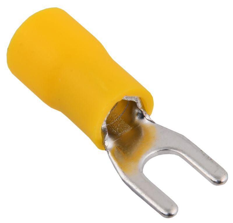 Наконечник НВИ 5,5-4 вилка 4-6 мм (100 штук в упаковке) используется для оконцевания многожильных и одножильных медных проводов методом опрессовки. Применяется там, где требуется прочное и долговечное винтовое соединение - например, в клеммах автоматических выключателей, контакторов, реле, трансформаторов и других устройствах с винтовыми зажимами М4.