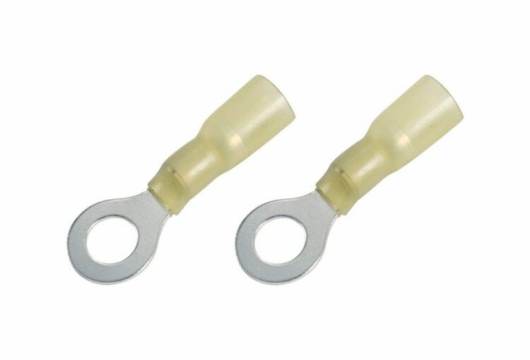 Наконечник кольцевой изолированный термоусаживаемый ø6.5 мм 4-6 мм2 (НКи-т 6.0-6 / НКи-т5,5-6) желтый совместим с любыми круглыми и многожильными медными проводами указанного сечения. Обжим выполняется до усадки изоляции - инструмент должен давить на металл, не задевая пластиковую трубку. После обжима изоляция равномерно усаживается теплом: