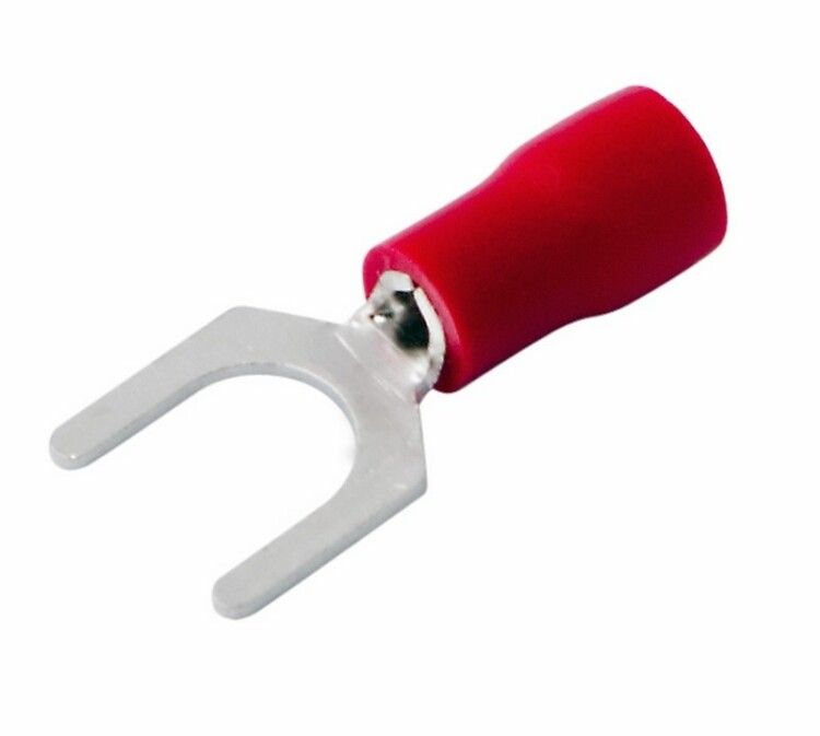 Наконечник вилочный изолированный 5.3 мм 0.5-1.5 мм2 (НВи 1.5-5, НВи 1.25-5, SVS1.25-5, VS1.25-5) от Rexant - это обжимной контакт для быстрого и надёжного подключения многожильных медных проводов к винтовым зажимам. Применяется там, где требуется частое отключение и переподключение - например, на станках, щитах управления или подвижном оборудовании.