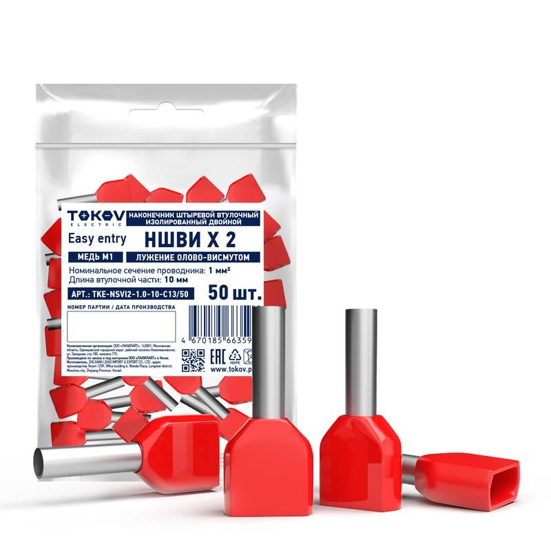 Наконечник штыревой втулочный изолированный двойн. НШВИ(2) 1.0-10 TOKOV ELECTRIC TKE-NSVI2-1.0-10-C13/50