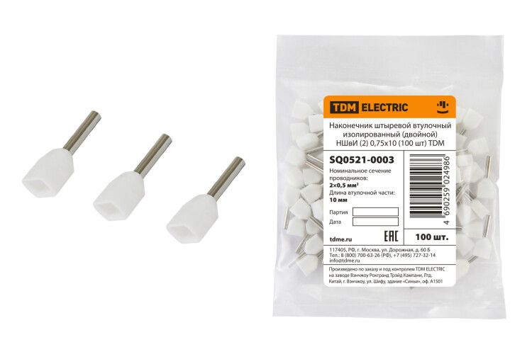 | Наконечник НШВИ(2) 0,75-10 штыревой втулочный двойной (уп.100шт) TDM | 12.12.2025 | 3 уп. | 118,03 ₽ | уп. | от 3 дней |
