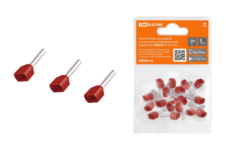 Наконечник штыревой втулочный изолированный (двойной) НШвИ (2) 0,75х8 (20шт) | SQ0568-0049 TDM