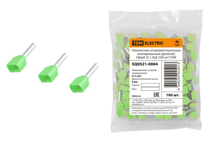 | Наконечник штыревой втулочный изолированный (двойной) НШвИ (2) 1,0х8 (100 шт) | SQ0521-0004 | TDM | 03.03.2026 | Под заказ | 115,99 ₽ | уп. | от 30 дней |