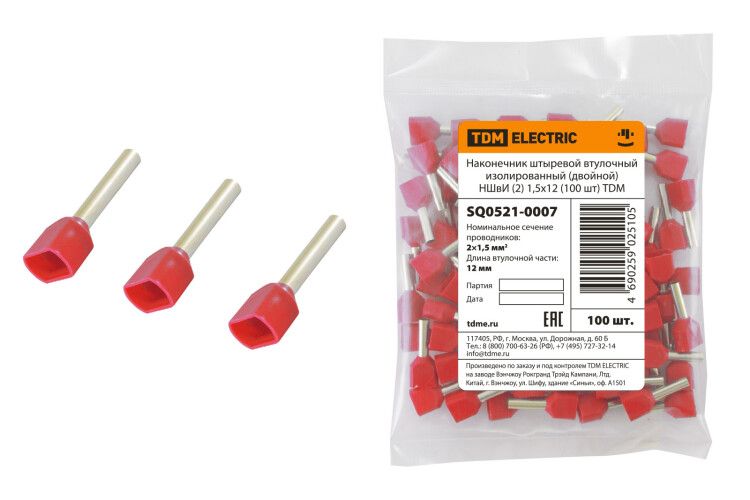 | Наконечник штыревой втулочный изолированный (двойной) НШвИ (2) 1,5х12 (100 шт) | SQ0521-0007 | TDM | 02.03.2026 | Под заказ | 158,76 ₽ | уп. | от 30 дней |