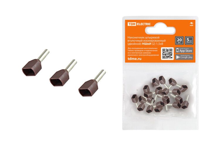 Наконечник штыревой втулочный изолированный (двойной) НШвИ (2) 1,5х8 (20шт) от TDM ELECTRIC предназначен для надёжного оконцевания гибких многожильных медных проводов сечением 1,5 мм2. Благодаря двойному исполнению и изоляции он удобен для монтажа в местах с ограниченным пространством и частыми изменениями схемы.