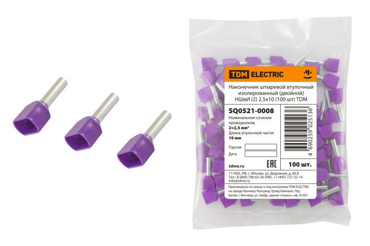 | Наконечник штыревой втулочный изолированный (двойной) НШвИ (2) 2,5х10 (100 шт) | SQ0521-0008 | TDM | 02.03.2026 | Под заказ | 194,4 ₽ | уп. | от 30 дней |
