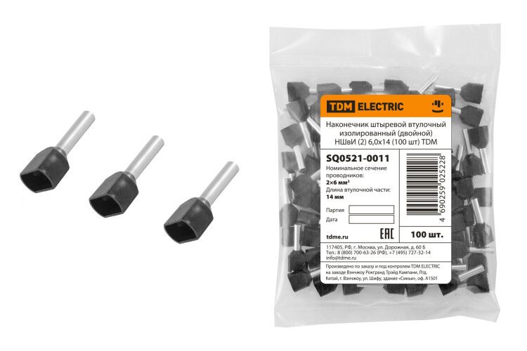 | Наконечник штыревой втулочный изолированный (двойной) НШвИ (2) 6,0х14 (100 шт) | SQ0521-0011 | TDM | 02.03.2026 | Под заказ | 312,34 ₽ | уп. | от 30 дней |