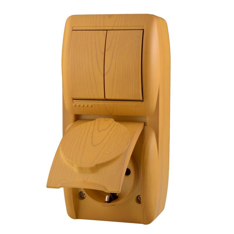 Блок Nata (розетка с заземл. защ. крышкой + 2-кл. выкл.) вертикал. ольха LEZARD 710-0700-173