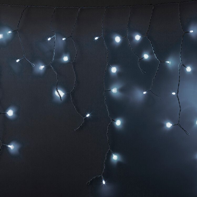 Гирлянда Айсикл имитирует сосульки и используется для создания зимнего или новогоднего антуража на внешних и внутренних поверхностях. Подходит для украшения: - фасадов зданий и крыш; - арок, балконов, парапетов; - витрин магазинов и ресторанов; - потолков, перил и других элементов интерьера. За счет равномерного распределения 240 светодиодов по 48 нитям создаётся естественная «падающая» световая текстура. Эффект мерцания делает декор более живым и привлекательным.