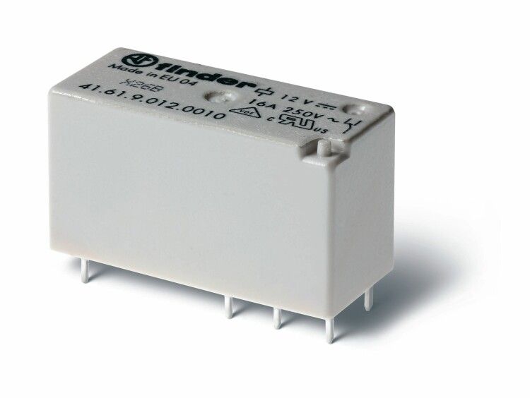 Низкопрофильное миниатюрное электромеханическое реле; монтаж на печатную плату; выводы с шагом 5мм; 1CO 16A; Контакты AgNi | 416190060010 Finder 41.61.9.006.0010