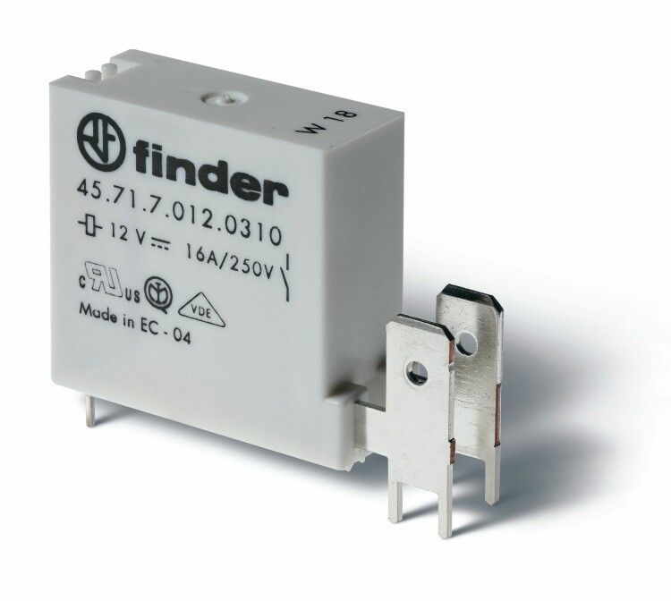 Низкопрофильное миниатюрное электромеханическое реле; монтаж на печатную плату; выводы с шагом 5мм + Faston 250(6.3x0.8мм) | 457170120310 Finder 45.71.7.012.0310