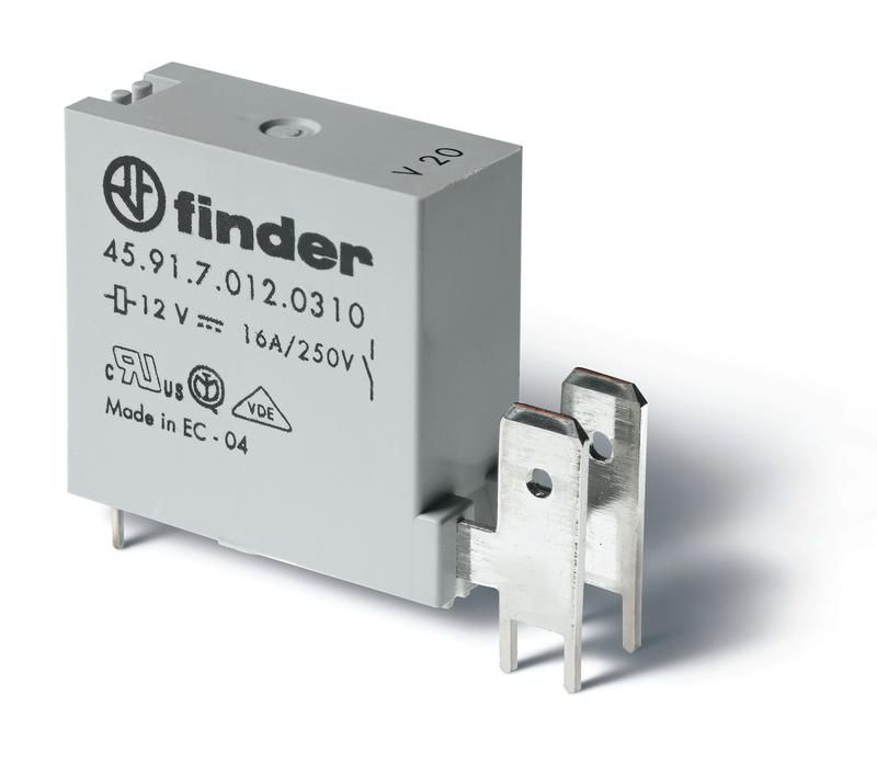Низкопрофильное миниатюрное электромеханическое реле; монтаж на печатную плату; выводы с шагом 5мм + Faston 250(6.3x0.8мм) | 459170090310 Finder 45.91.7.009.0310