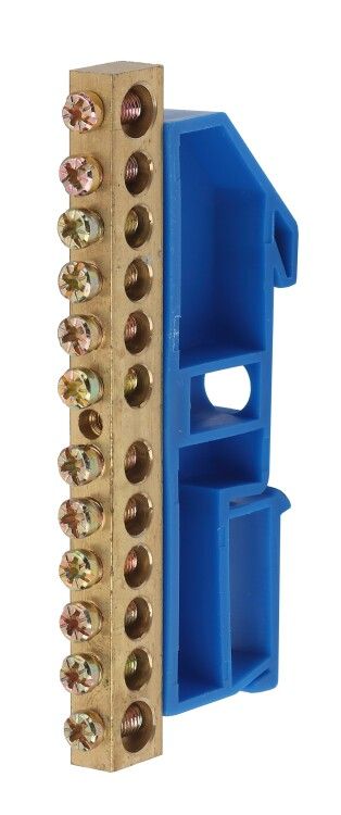 Шина заземления PE на DIN-изоляторе ШНИ-8х12-12-Д синяя используется для объединения всех защитных заземляющих проводников (PE) в распределительных щитах. Подходит для жилых, коммерческих и промышленных объектов, где требуется централизованное подключение заземления - например, в этажных щитках, щитах автоматики, системах УЗО и дифференциальной защиты.