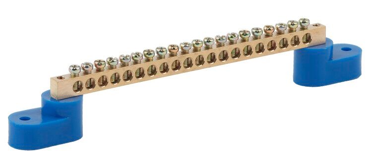 Шина N "ноль" на двух угловых изоляторах ШНИ-6х9-20-У2 синяя используется для создания единой точки подключения нулевых (N) и защитных (PE) проводников в электрических щитах. Подходит для установки в силовые, осветительные и автоматизированные системы. Применяется в распределительных устройствах жилых домов, офисов, производственных цехов и на объектах инфраструктуры, где требуется надёжное и компактное решение для массового подключения нулевых проводов.