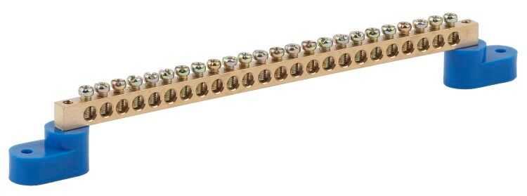 Шина ноль на двух угловых изоляторах ШНИ-6х9-24-У2 синий используется для создания единой точки подключения нулевых (N) и защитных (PE) проводников в электрических щитах. Подходит для установки в бытовые, коммерческие и промышленные распределительные устройства. Может применяться в системах TN-S, TN-C-S, IT. Также допускается использование для фазных проводников при необходимости группового подключения, если соблюдены условия по токовой нагрузке и изоляции.