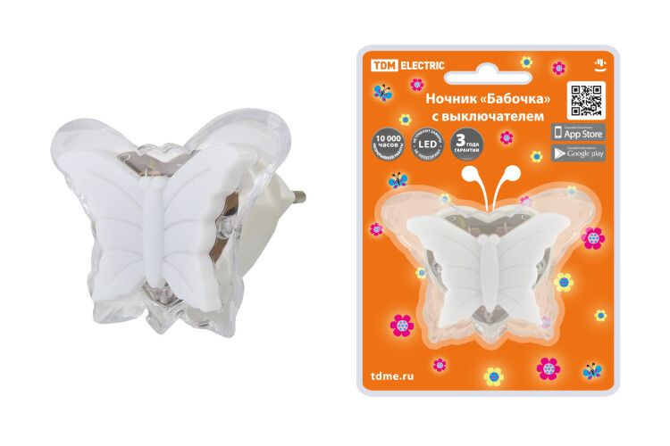 Ночник "Бабочка" с выключателем, 0,3 Вт, 220 В | SQ0357-0029 TDM
