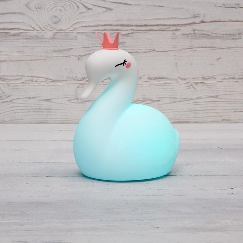 Ночник силиконовый Лебедь предназначен для создания уютной атмосферы в детской комнате. Он помогает ребёнку спокойнее засыпать, снижая страх темноты за счёт мягкого, изменяемого света. Подходит для установки на тумбочку, полку или столик рядом с кроватью. Не используется как основной источник освещения - только как ночная подсветка.
