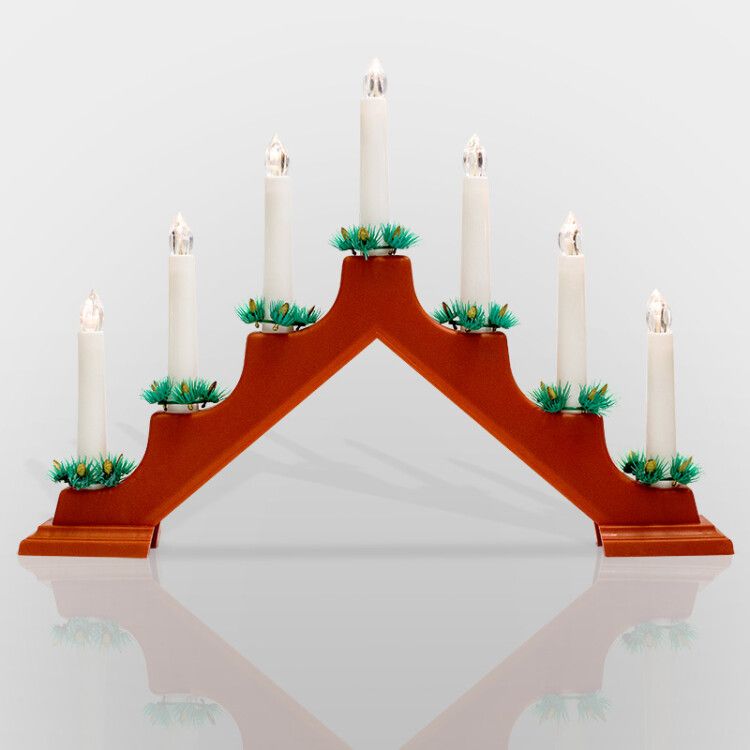 Новогодняя домашняя горка 7 свечек, цвет корпуса: Красный, свечения: Теплый белый - 501-082 NEON-NIGHT