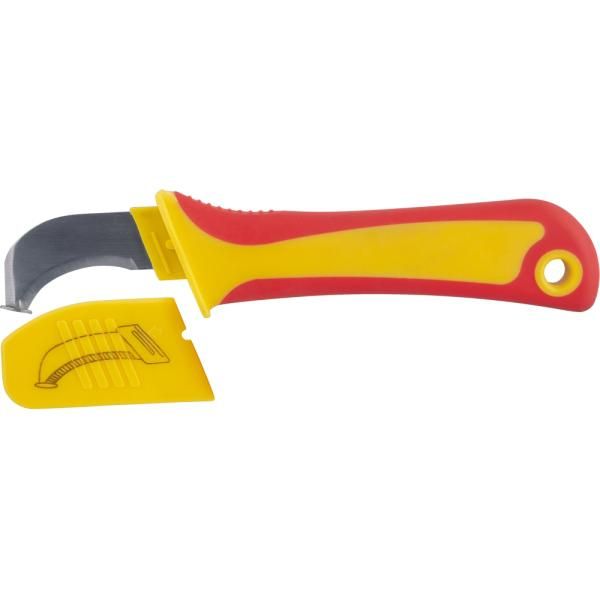 Нож диэлектрический 82 963 OHT-Nmd02-185 с пяткой - инструмент для безопасной работы под напряжением до 1000 В. Подходит для зачистки, резки и снятия изоляции кабелей. Произведён компанией ОНЛАЙТ в серии OHT-NMD, артикул 82963.