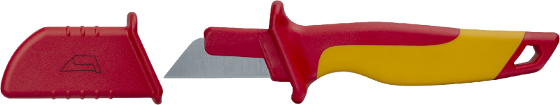 Нож диэлектрический с прямым лезвием NHT-Nmd03-185 от Navigator - инструмент для безопасной работы с изоляцией проводов и кабелей в электроустановках до 1000 В. Его конструкция сочетает надёжную защиту от поражения током и точное снятие изоляции, что делает его удобным для монтажников и электромонтеров.