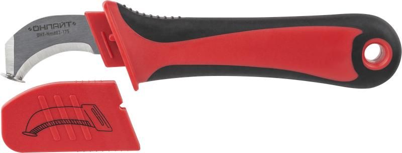 Нож диэлектрический 90 112 с увеличенной пяткой OHT-Nmd03-175 от бренда ОНЛАЙТ предназначен для безопасного зачистки изоляции кабелей напряжением до 1000 В. Его конструкция обеспечивает надёжную защиту при работе под напряжением, особенно в условиях ограниченного доступа.