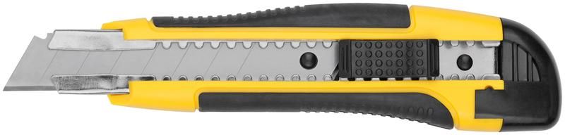 Нож технический 18 мм усиленный прорезиненный, 2-х сторонняя автофиксация Профи - 10258 РОС