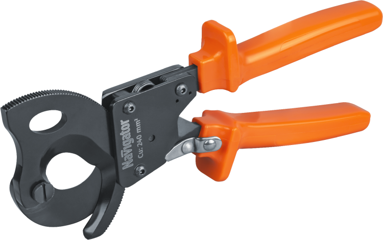 Ножницы секторные для небронированного кабеля до 32 мм от бренда Navigator (артикулы 82332 и 23684) предназначены для точной и эффективной резки кабелей с максимальным диаметром 32 мм и сечением до 240 мм2. Конструкция с храповым механизмом снижает физическую нагрузку при работе, особенно при частых операциях.