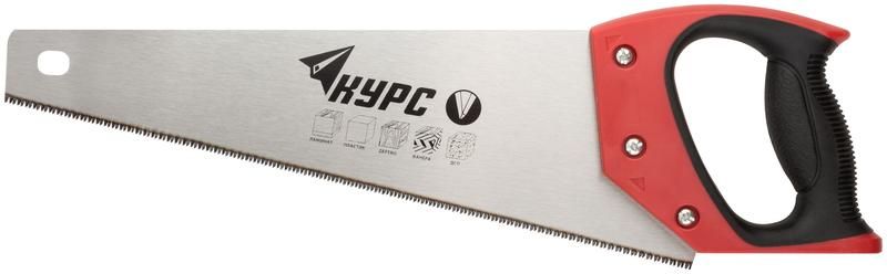 Ножовка по дереву 350мм мелкий каленый зуб 12 ТPI 3D заточка пласт.прорезиненная ручка КУРС 40370