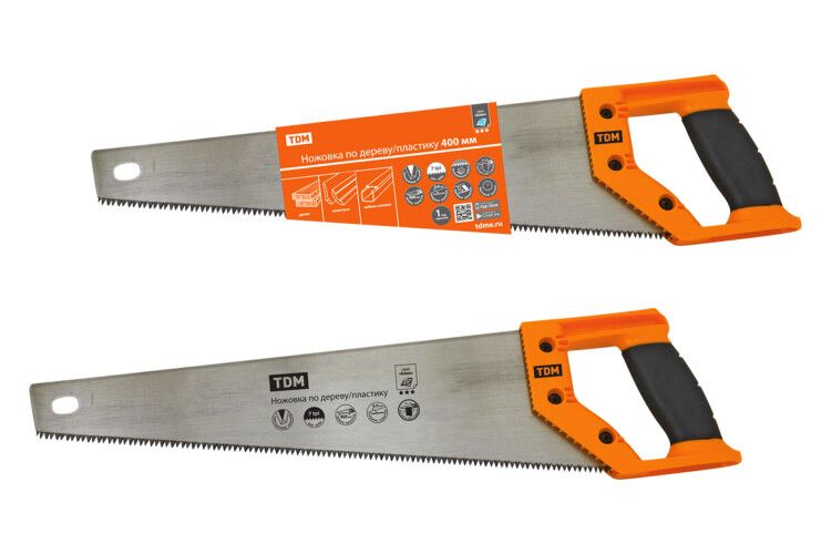 Ножовка по дереву/пластику 400 мм, закаленные зубья, прорезиненная рукоятка, "Алмаз" | SQ1035-0102 TDM