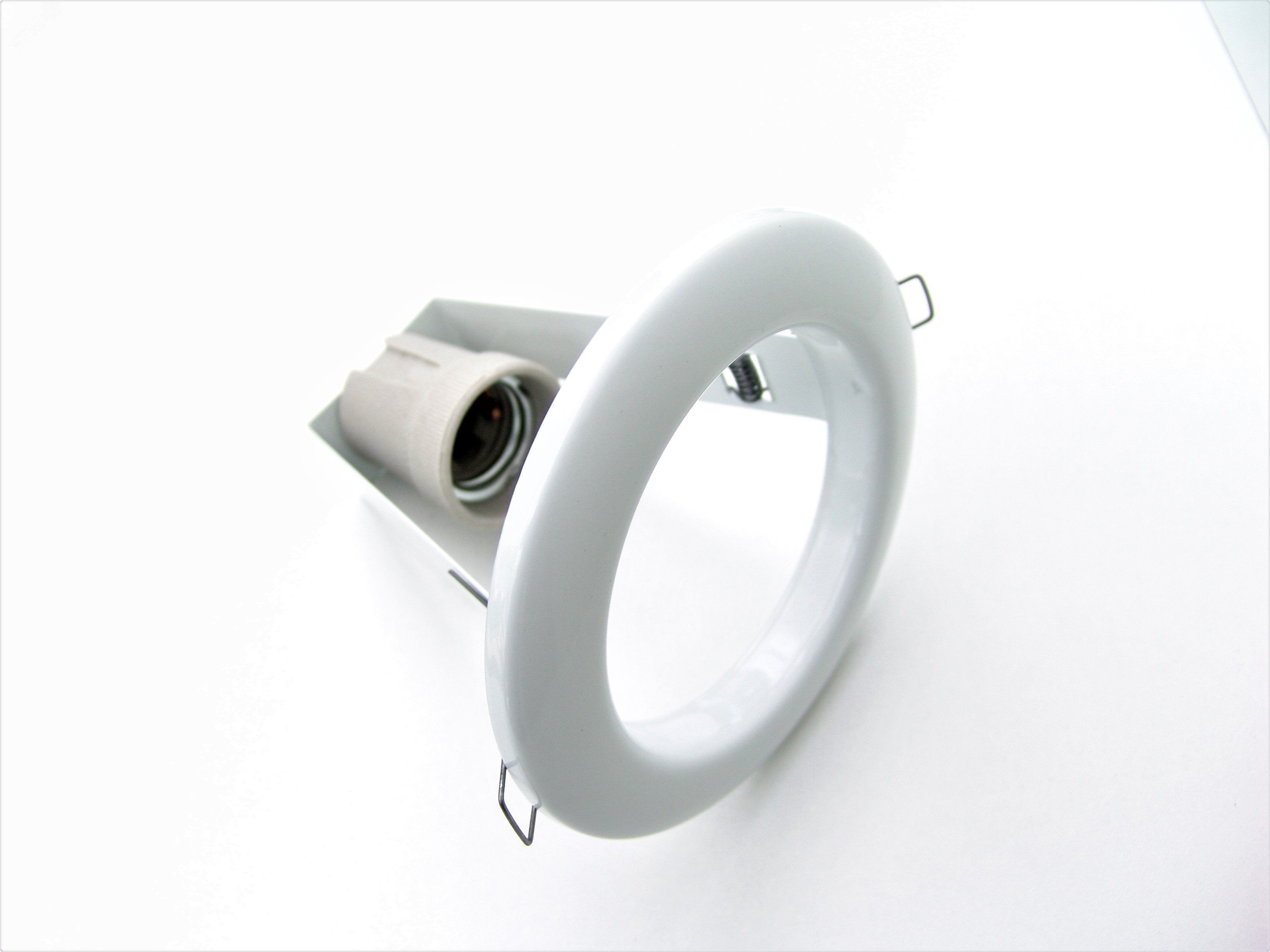 Светильник накладной высокого освещения 100 Вт R80 E27 белый устанавливается на плоскую поверхность - потолок или стену - с помощью болтов через четыре крепёжных отверстия. Монтажный диаметр 90 мм соответствует стандартным вырезам в гипсокартоне или деревянных перекрытиях. Лампа вставляется в патрон E27 снаружи - доступ к замене открытый, без демонтажа корпуса. Обязательно соблюдайте расстояние от светового центра до пола не менее 1,3 м. Не используйте лампы мощнее 100 Вт - это может вызвать перегрев.