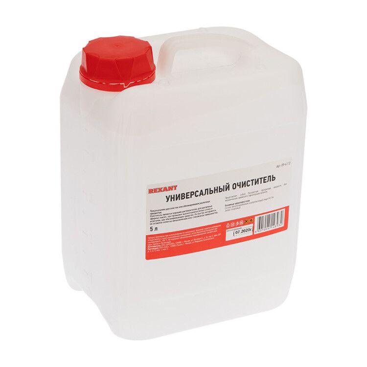 Очиститель универсальный 5 л (абсолютированный 99,7%) REXANT (арт. 09-4112) - высокоочищенный изопропиловый спирт для удаления жира, пыли, следов смазки и влаги с чувствительных поверхностей без повреждений и остатков.