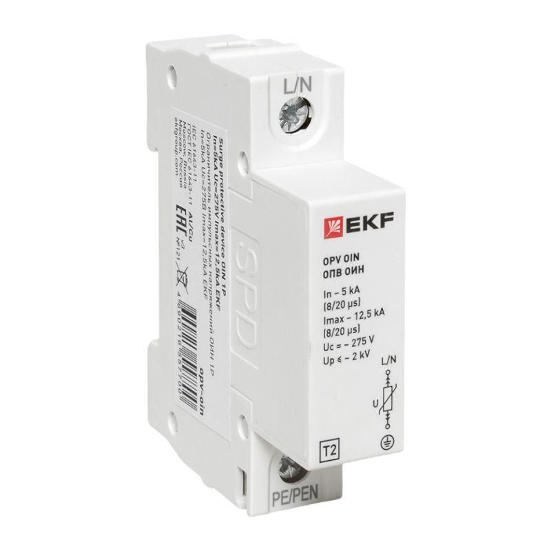 Ограничитель импульсных напряжений ОИН 1Р In=5kA Un=275B Imax=12,5kA | opv-oin EKF