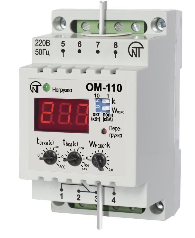 Ограничитель мощности ОМ-110 1ф 220В до 20кВт индикация мощн. встроен. трансформатор тока 3 DIN НовАтек-Электро 4325604110 3425604110-01