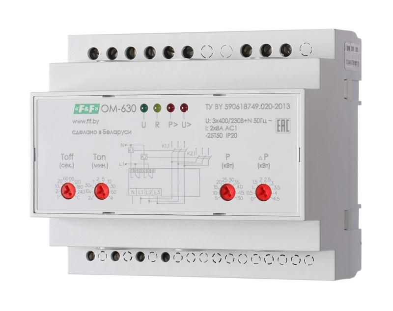 Ограничитель мощности ОМ-630 3ф 5-50кВт многофункц. подключение приоритетной и неприоритетной нагрузок F&F EA03.001.007 Евроавтоматика