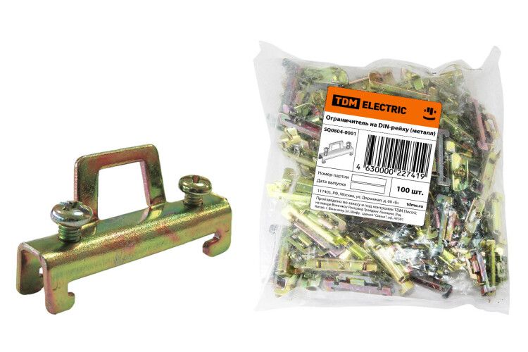Ограничитель на DIN-рейку (металл) от TDM ELECTRIC (артикул sq0804-0001) предназначен для надёжного удерживания модульного оборудования на стандартной DIN-рейке 35 мм, предотвращая её случайное смещение или выпадение при монтаже и эксплуатации.
