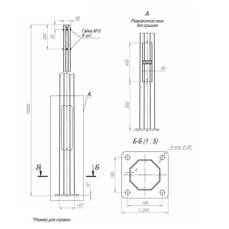Опора ОГКф-10(К240-180-4х25)-ц | В00000167 Пересвет - это высококачественная опора из стали, предназначенная для монтажа уличных фонарей. Она может использоваться на территориях различных заводов, сельскохозяйственных предприятий, в общественных и административных зданиях, а также возле жилых домов, дач и коттеджей.