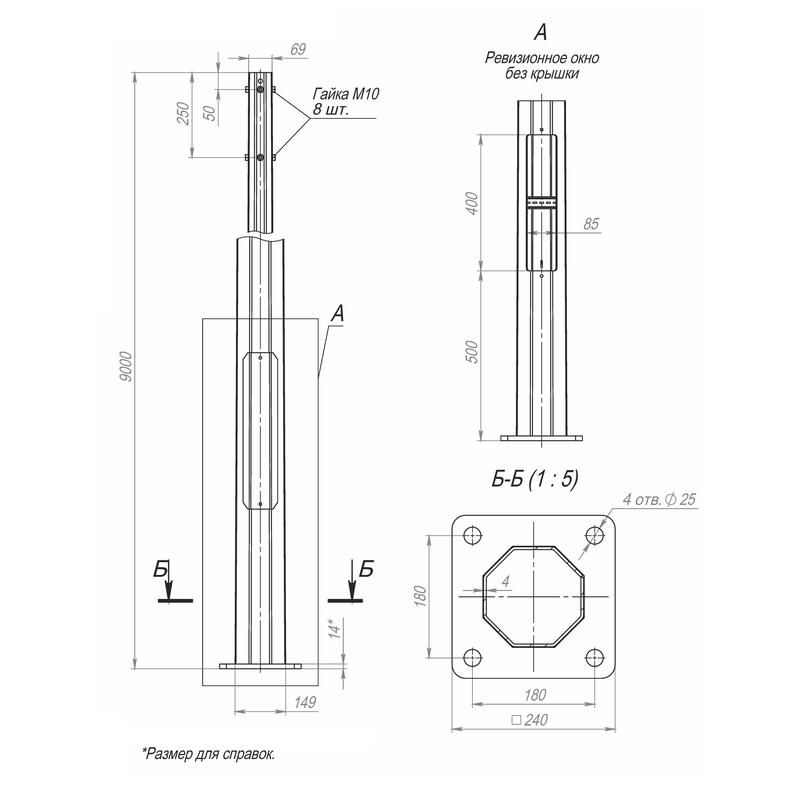 Опора ОГКф-9(К240-180-4х25)-ц | В00000465 Пересвет - это восьмигранная опора с коническим сужением, разработанная компанией Пересвет.