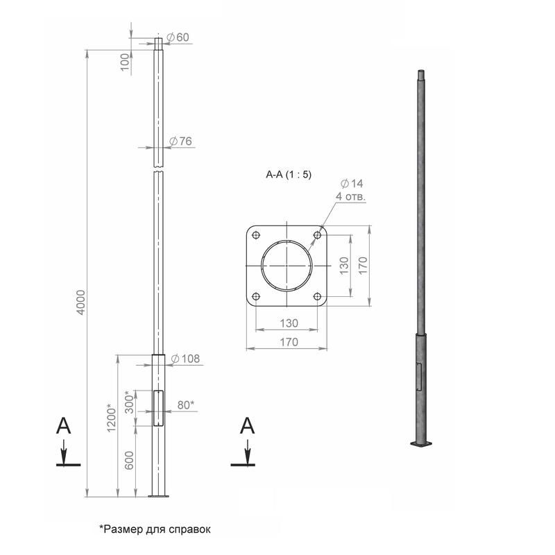 - Опора ОП1ф-4,0-108/76/т60-(К170-130-4х14)-по 9005 муар от Пересвет рассчитана на длительную службу - не стоит экономить на качестве фундамента