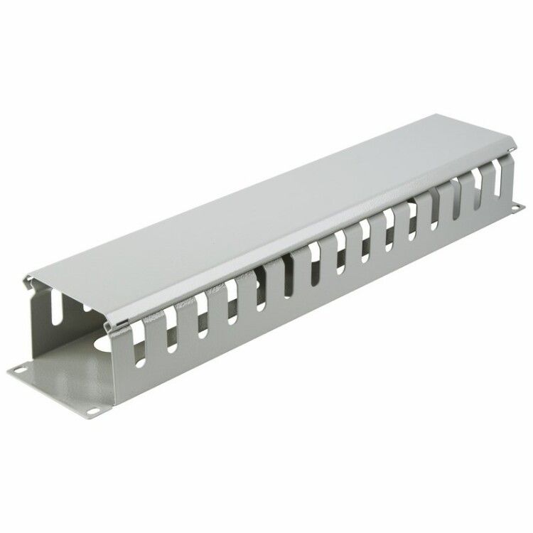 Горизонтальный кабельный органайзер с крышкой 2U от Rexant (артикул 04-2645) - это металлический держатель для упорядочивания кабелей в 19-дюймовых стойках. Подходит для серверных, телекоммуникационных и промышленных систем, где важна чёткая маршрутизация проводов.