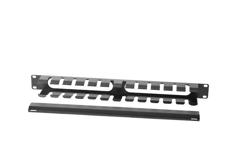 Органайзер кабельный горизонтальный ГКЗ-1U-9005 1U ширина 19 дюймов односторонний пластиковый канал ЦМО предназначен для упорядоченного размещения кабелей в серверных стойках 19 дюймов. Этот элемент фиксирует провода на передней стенке оборудования, снижает переплетение и упрощает обслуживание.