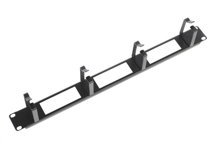 Органайзер кабельный горизонтальный с окнами 19 дюймов 1U, 4 кольца, цвет черный от бренда ЦМО - компактное металлическое решение для упорядочивания кабелей в серверной стойке. Артикул гко-о-4.62-9005 подходит для установки в 19-дюймовые шкафы, обеспечивает четкую маршрутизацию проводов и снижает риск перегибов.