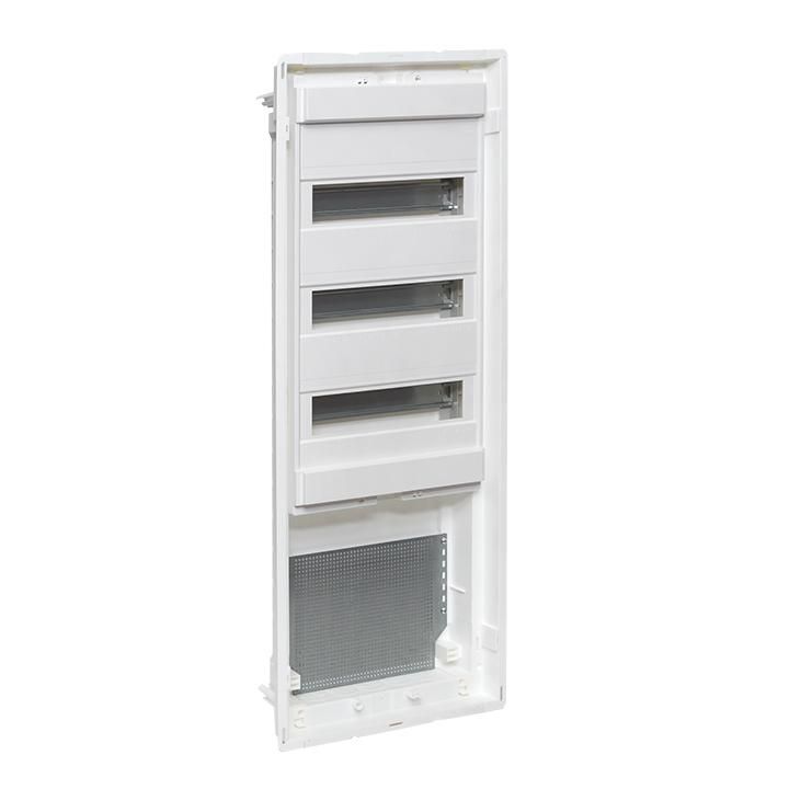 Основание комбинированного щита EKF NV-CBASE-3+1 - это универсальная базовая конструкция для сборки щитов, сочетающая три DIN-рейки и одну монтажную плату. Подходит для установки силового и слаботочного оборудования в стенах из бетона, кирпича или гипсокартона. Надёжное решение для монтажа в скрытых нишах с глубиной 90 мм.