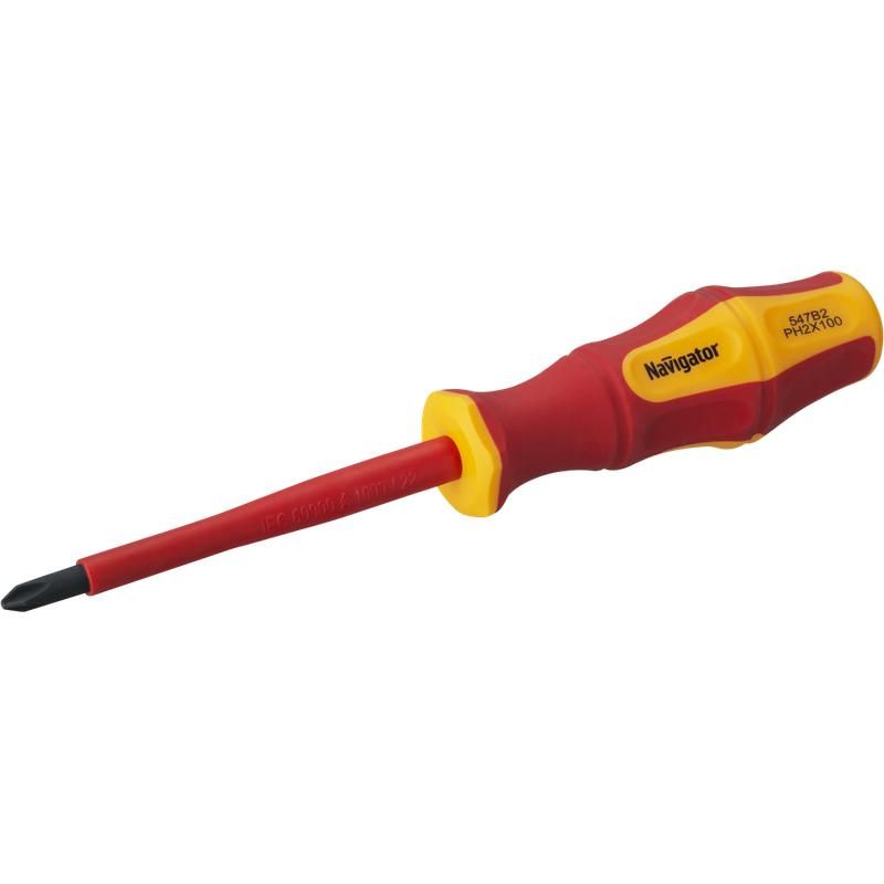 Отвертка диэлектрическая крестовая PH2 100 мм от бренда Navigator (артикул 93423) предназначена для работы с электрооборудованием под напряжением до 1000 В - безопасный инструмент для монтажа и обслуживания в условиях повышенной опасности.
