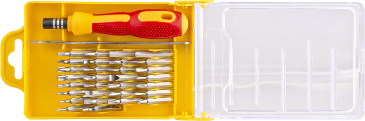 Отвертка для точных работ 82 948 OHT-Ott02-H32, 32 насадки совместима с любым стандартным магнитным или бесмагнитным патроном для прецизионных отверток. Насадки фиксируются плотно - без люфтов. Для замены просто вынимается старая бита и вставляется новая. Не требует специальных инструментов для установки.