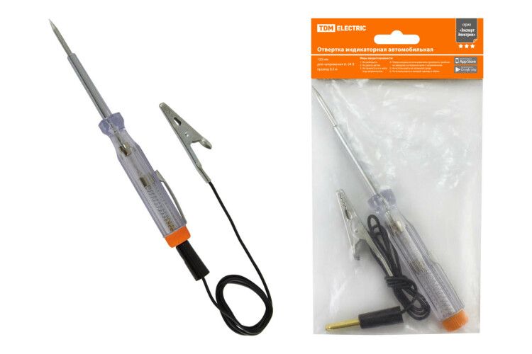 Отвертка-пробник (индикатор) автомобильная 135 мм, 6-24В, провод 0.5м, "ЭкспертЭлектрик" | SQ1015-0005 TDM