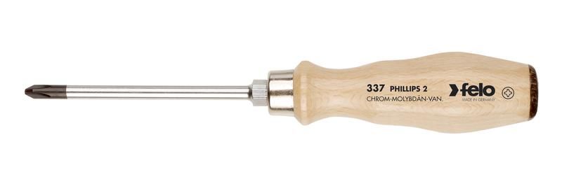 Отвертка ударная Felo серия 330 с деревянной рукояткой - надежный инструмент для работы с крепежом под крестовой шлиц PH 2, рассчитанный на повышенные нагрузки. Подходит для монтажа и ремонта оборудования, где требуется значительный крутящий момент, например, при сборке металлоконструкций, станков или тяжелой техники.