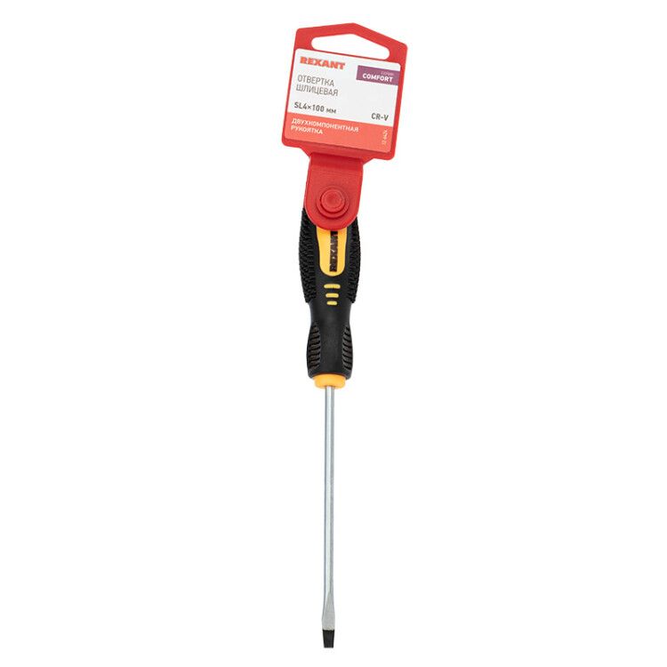 Отвертка шлицевая SL 4х100 мм, двухкомпонентная рукоятка | 12-6424 REXANT MEET