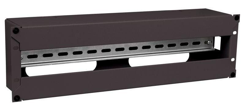 Панель электрораспределительная 3U с DIN-рейкой черная совместима с любыми 19-дюймовыми стойками и шкафами. Для установки используются стандартные крепёжные элементы: винт, шайба, гайка - они не входят в комплект, но доступны отдельно. DIN-рейка уже установленная - можно сразу монтировать модули. Кабели заводятся сзади через прямоугольные окна - удобно при плотном расположении устройств. Корпус имеет отверстия под болты M4 для фиксации к раме стойки.